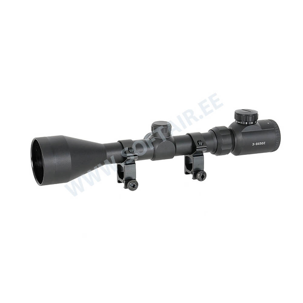 Set include: scope 3-9x50E, lens cover and high mounting rings for 22 mm RIS rail.