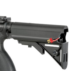Thanks to the ergonomic 6-position adjustable SF-type stock, the length of the replica can be adjusted to the player’s build and preferences. Inside the stock, there is space for a Li-Po battery. It also has a removable flash hider, under which there is a standard 14 mm CCW thread, allowing the installation of additional mock suppressors or tracers.