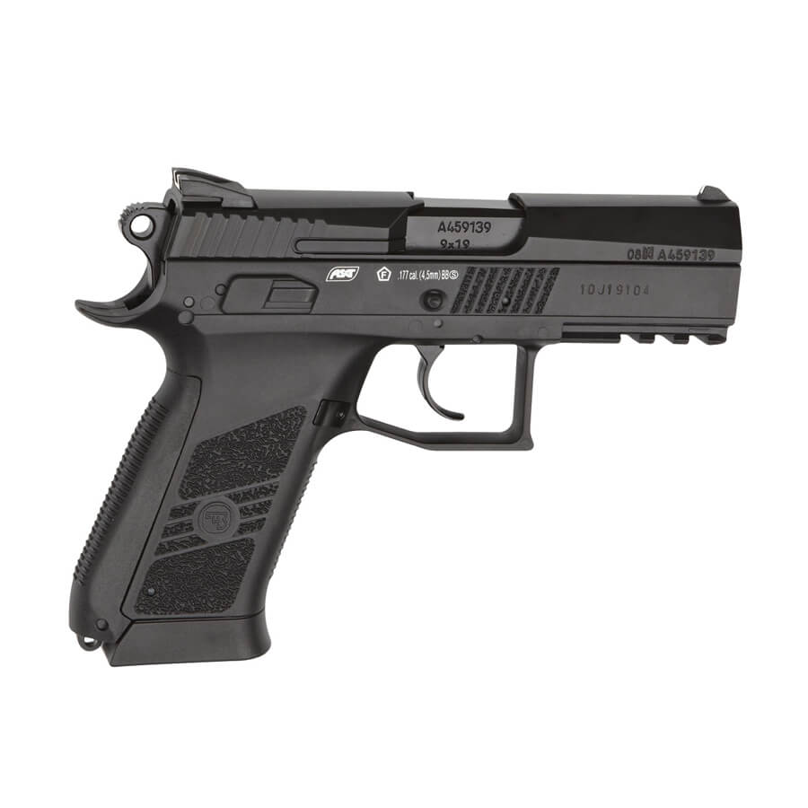 The CZ 75 P-07 DUTY is the new generation of the CZ 75 family which was designed back in 1975 by the famous small arms manufacturer Česká Zbrojovka, Czech Repliblic. The CZ 75 P-07 DUTY is a compact tactical pistol and has an integrated front waiver rail for mounting light and/or laser. The barrel has threads for a silencer. The grip and metal slide carries authentic CZ markings and every gun comes with its own unique serial number. Pistol is powered by a 12g Co2 capsule stored in the grip using the easy-load system and the BB’s are put in the drop-out magazine.