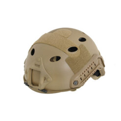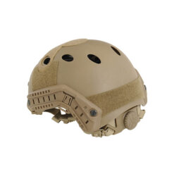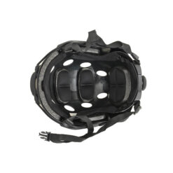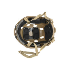 Helmet is equipped with two mounting rails, designed to hold special mount for tactical accessories such as tactical flashlights, hearing protection, etc. There is also mount for night vision goggles at front of the helmet. It have a velcro tapes allowing to attach team flags, moral pads, etc. Replica of ballistic helmet is equipped in size regulation (57-61 cm).