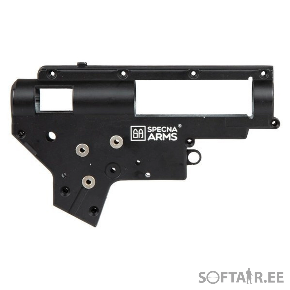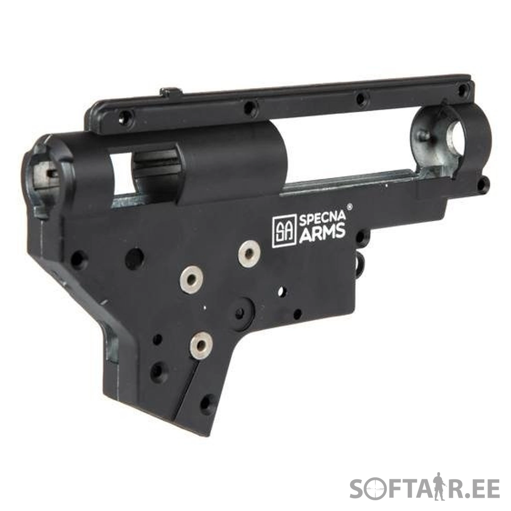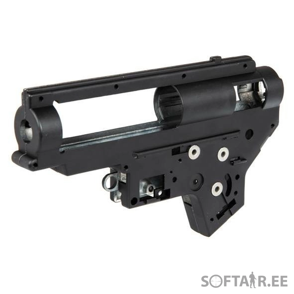 A durable gearbox V2 frame made of metal, dedicated for AR15 carbine replicas. The frame is adapted to ESA™ quick spring change system.