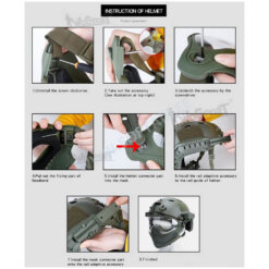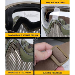 The mask can be used separately by wearing it on the head with a rubber band or attached to the rail of the Fast type helmet. The glasses are changeable and the set includes clear, yellow and tinted glass.