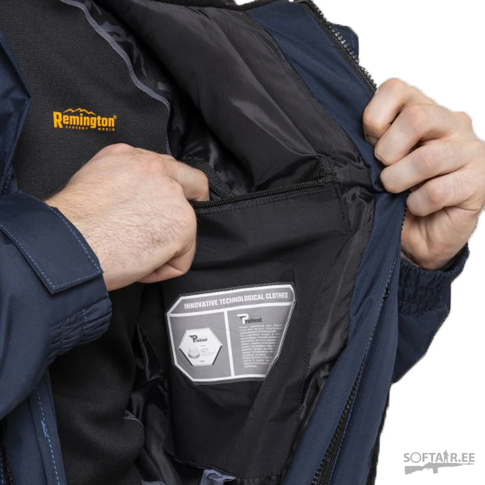 The Remington Lifeguard III coverall is designed for fishing in harsh winter conditions and was developed in cooperation with experienced anglers. The outer layer is made of durable fabric with a Climatic Extreme membrane that protects against wind and moisture. Warmth in the Remington Lifeguard III coverall is provided by two types of insulation — ProHeat and EPE — which maintain comfort at temperatures down to –30 °C (when proper layering is used).