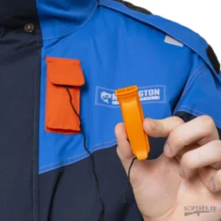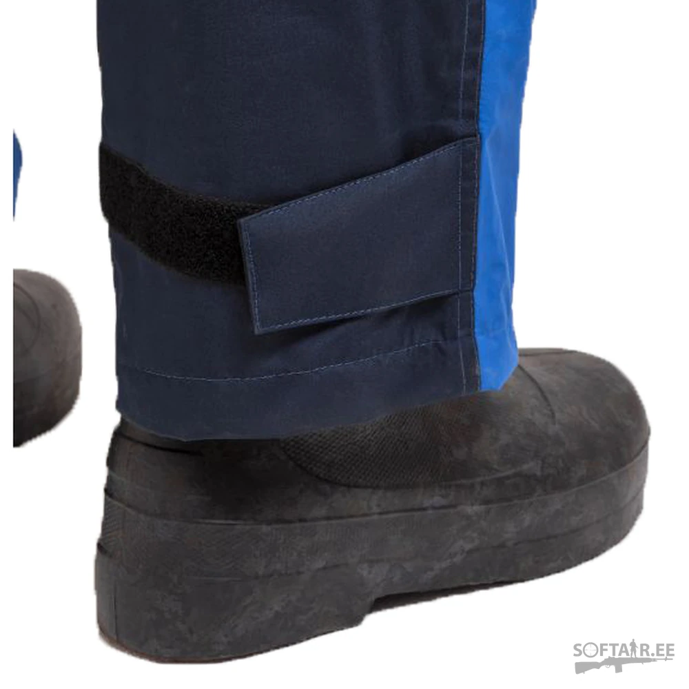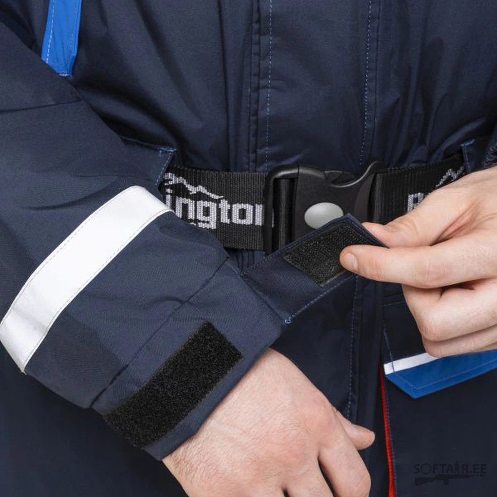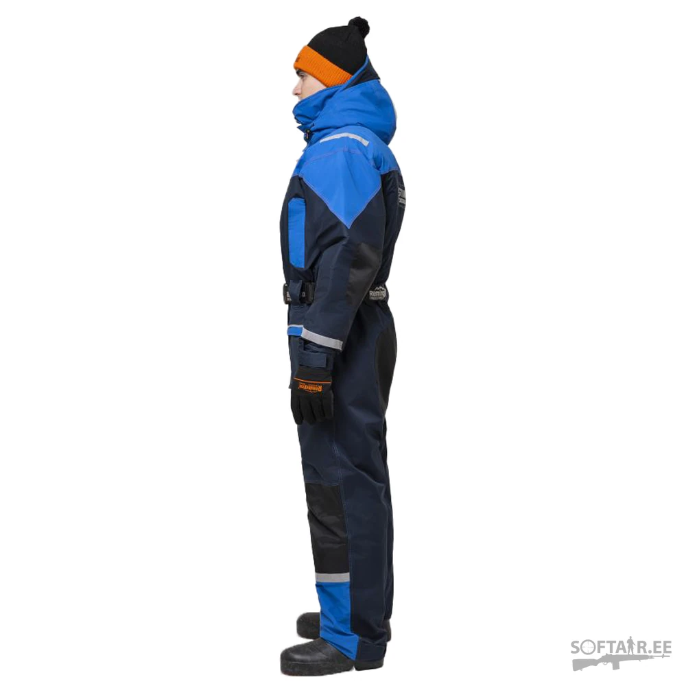 The main advantage of the coverall is its ability to keep a person afloat in case of falling into the water. The high-visibility contrasting upper section, reflective inserts, and a built-in whistle enhance safety on the ice and in extreme situations.