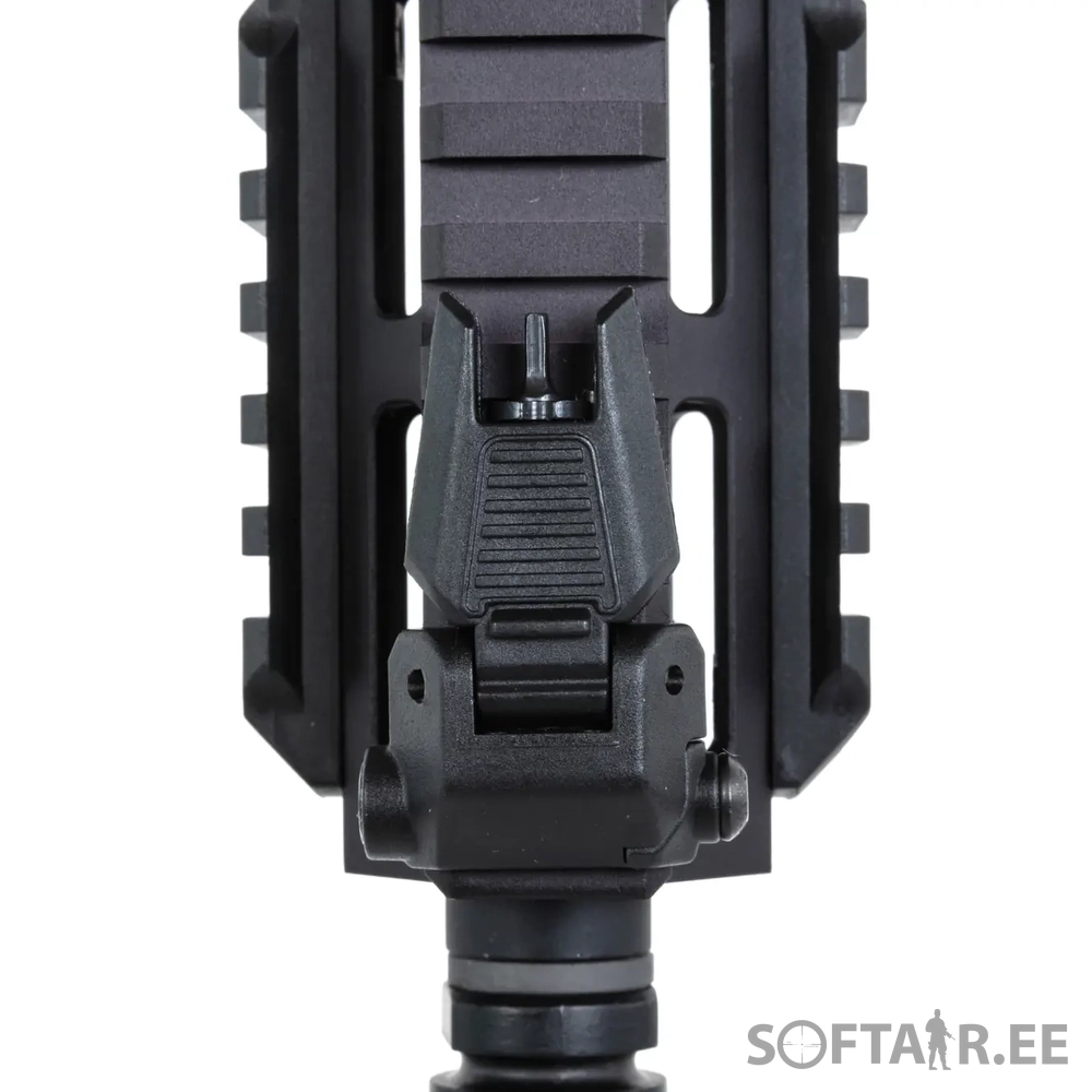 The replica is equipped with a front M-LOK rail and an adjustable buttstock. A folding sight has been fitted on the upper RIS rail, which does not interfere with the optoelectronic aiming devices. Thanks to the extendable buttstock finished with an anti-slip textured foot, it is possible to adjust the length of the replica to the build and the shooter’s preferences. The standard flame suppressor is mounted on a 14-mm left-hand thread, which makes it possible to attach a sound suppressor in its place.