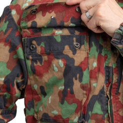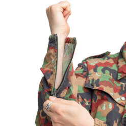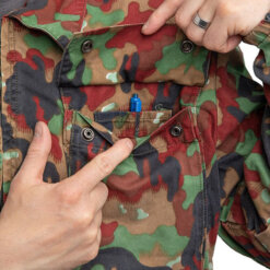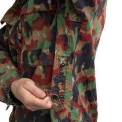 A bit used Šwiss camo field jacket. Material: 50% cotton, 50 % polyester. Most look like new.