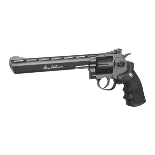 Suurus on oluline! Massiivne 8” võimas ja pilkupüüdev revolver pakub suurepärast täpsust ja jõudu. Relv on toodetud Dan Wesson litsentsi alusel ning kannab autentset markeeringut ja unikaalset raami stantsitud kerenumbrit. Relva sihik on reguleeritav mis tagab täpsuse. Relva raam on metallist ning ergonoomiline käepide ABS plastikust. 12g CO2 kapsel paigutatakse käepidemesse. Kõik kuus pardunit mahutavad ühe 4.5mm roostevabast terasest haavli. Padrunid asetatakse trumlisse mis keerleb iga lasu sooritamise ajal. Relvaga on kaasas kiirlaadija, sihikualus, ning 6 korduvkasutatavat padrunit.